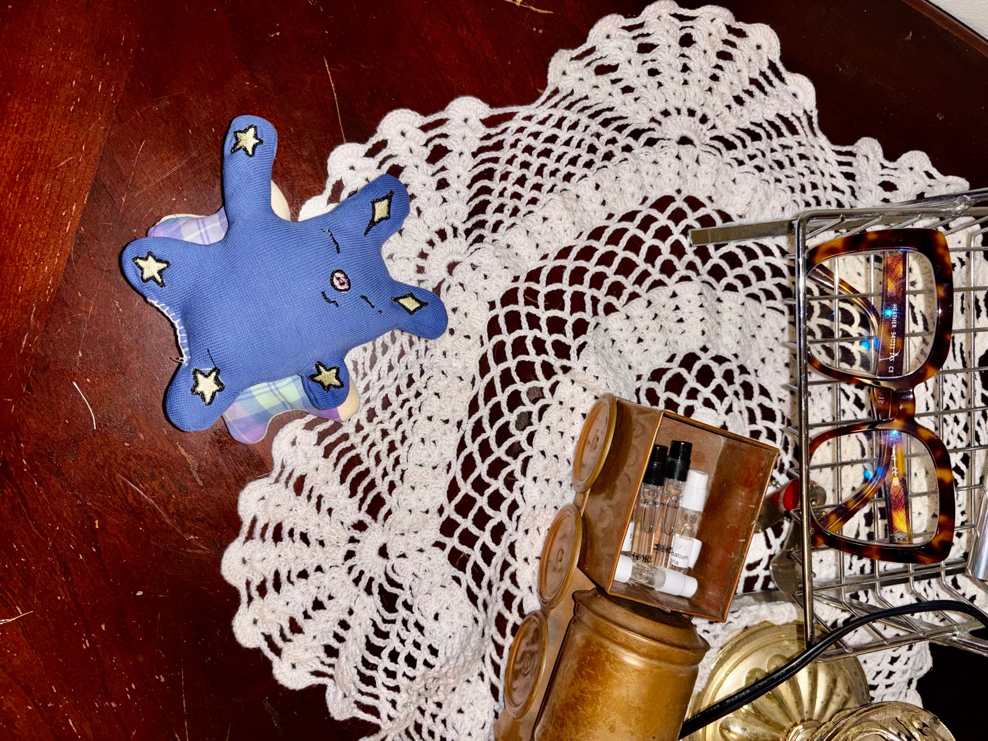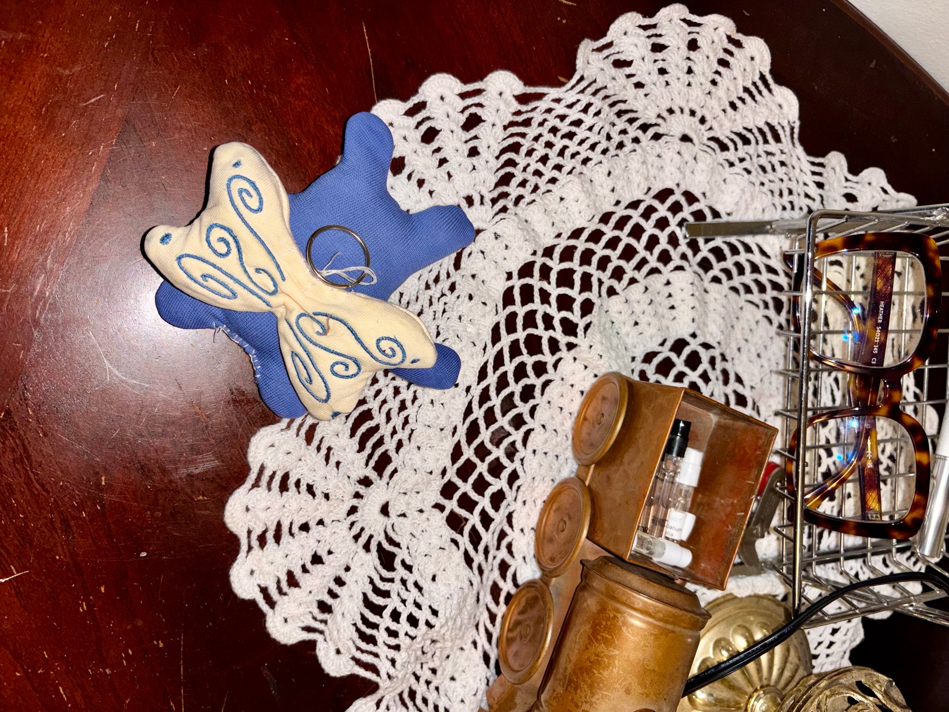 Adorable plushies made from scrap fabric with star embroidery and wings with 2 internal pockets.