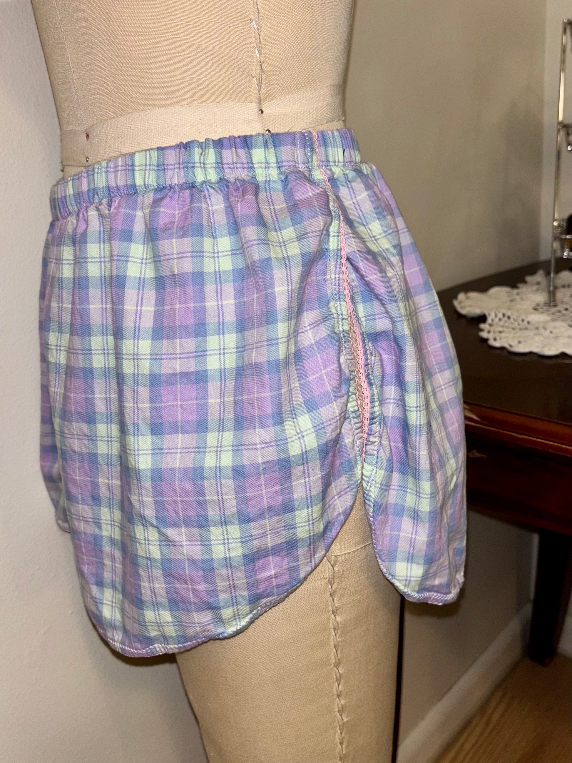 The perfect pj shorts. Adorable boxers with a curved hem and elastic waistband. Embroidered with a ballerina cat drawn by me :) and complete with pink picot trim.